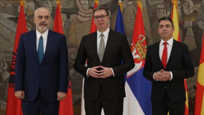 Predsjednik Republike Srbije Aleksandar Vučić, predsjednik Vlade Republike Albanije Edi Rama i zamjenik predsjednika Vlade Sjeverne Makedonije zadužen za evropska pitanja Nikola Dimitrov, potpisali su danas zajedničku izjavu “Budućnost proširenja – pogled iz regiona”, u okviru inicijative za saradnju “Otvoreni Balkan”, prenosi Anadolu Agency (AA).