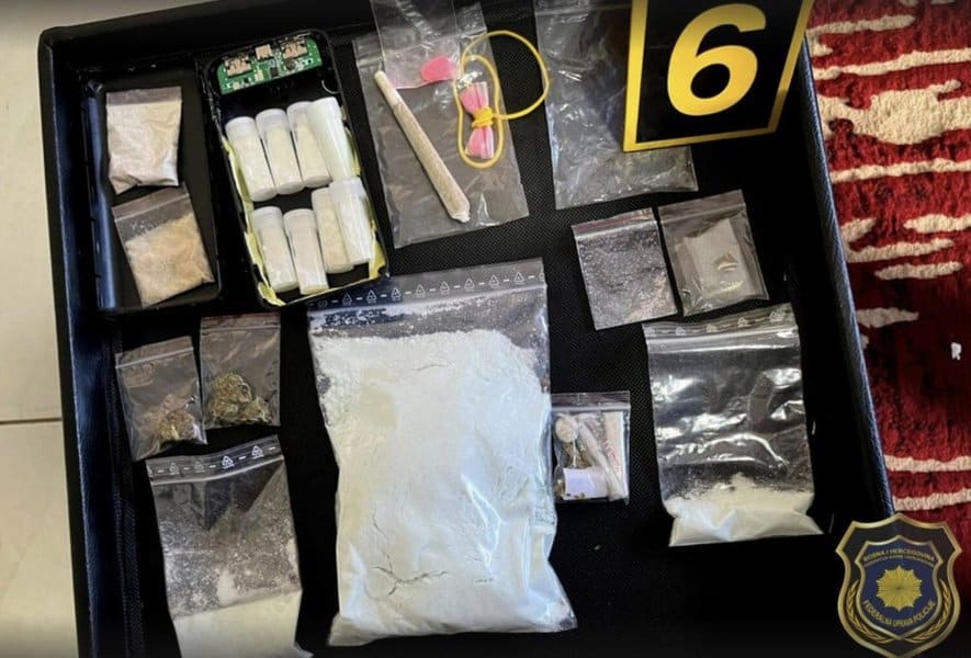 “Tom prilikom je pronađeno oko 300 grama amfetamina, 20 grama kokaina, određena količina heroina, LSD-a, te metamfetamina (Crystal Meth), kao i pištolj i veća količina municije”, saopćeno je iz FUP-a.